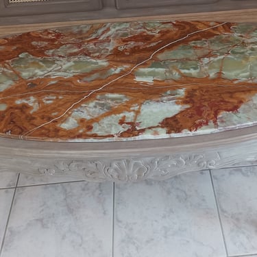 Table basse régence en fluid'art Bleu Tetsukon (variante Gris perle au liseré anthracite) orné d'Or riche